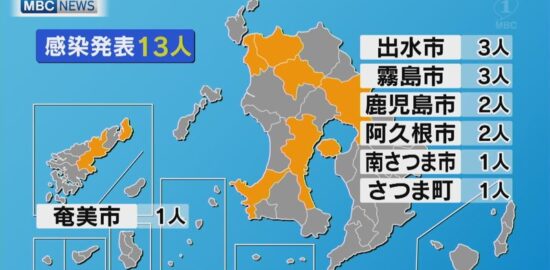 鹿児島県内では8日、新型コロナウイルスの感染者が新たに13人発表されました。また、感染者1…