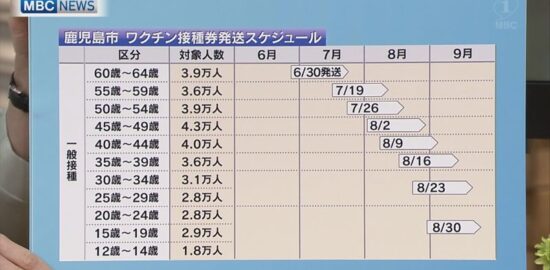鹿児島市 64歳以下の接種券、順次発送 接種は11月末完了見込み