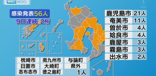 新型コロナ 鹿児島県内新たに56人感染 1人死亡