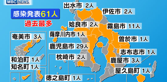 鹿児島県内では12日、新型コロナの感染者が過去最多となる61人発表されました。感染…