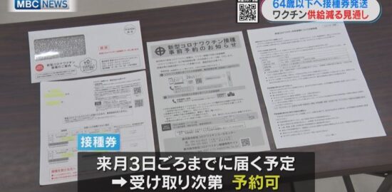鹿児島市は6月30日から8月上旬にかけて、64歳以下の人に新型コロナワクチンの接種券を送る…