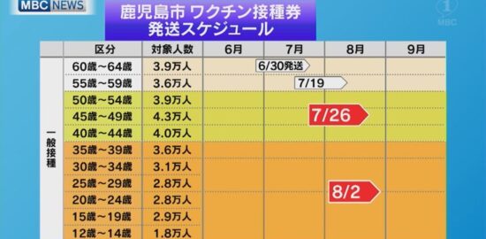 鹿児島市 接種券の発送前倒し 8月上旬完了へ