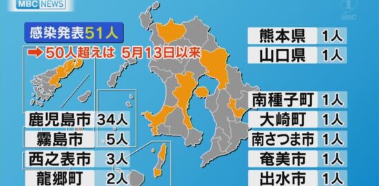 新型コロナ 鹿児島県内感染者51人 50人超は5月以来