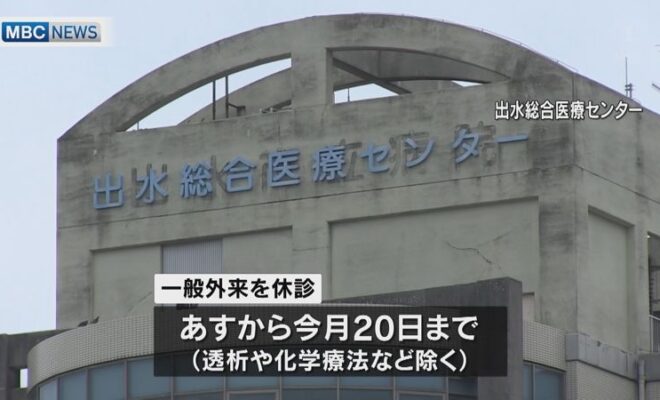 鹿児島県出水市の出水総合医療センターで5日、新型コロナの感染者集団=クラスターが確認されたことを受け、医療センターは7日から2週間、一般外来を一部を除き休診すると発表しました。出水総合医療センターによりますと、一般外来を休…