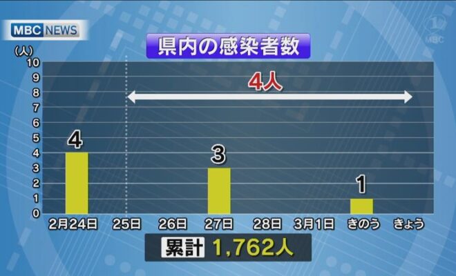 鹿児島県内では3日、新型コロナウイルスの感染者の発表がありませんでした。発表がなかったのは2日ぶりです。3日、県内では2日ぶりに感染者の発表はありませんでした。先月25日から1週間の感染者は4人で、感染者の累計は1762人…
