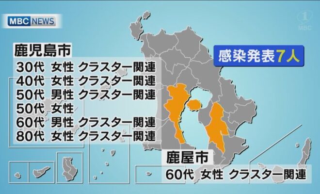 鹿児島県内では23日、新型コロナウイルスの感染者が新たに7人発表されました。また、入院中の1人が死亡しました。感染が確認されたのは、鹿児島市の30代から80代の男女6人と、鹿屋市の60代女性のあわせて7人です。鹿児島市の6…