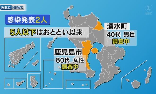 鹿児島県内では19日、新型コロナウイルスの感染者が新たに2人発表されました。また、感染者1人の死亡も発表されました。【6月19日 新型コロナ 新規感染者 2人】・鹿児島市の80代女性 感染経路は調査中・湧水町の40代男性 …
