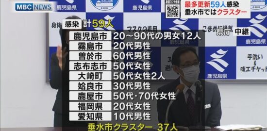 新型コロナ 鹿児島県内で過去最多の59人感染確認