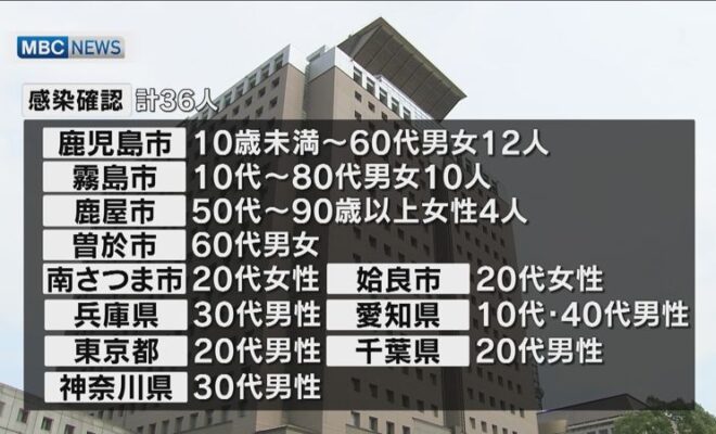 鹿児島県内では6日、新型コロナウイルスの感染者がこれまでで2番目に多い36人が発表されました。感染が確認されたのは、鹿児島市の10歳未満から60代の男女12人、霧島市の10代から80代の男女10人、鹿屋市の50代から90歳…