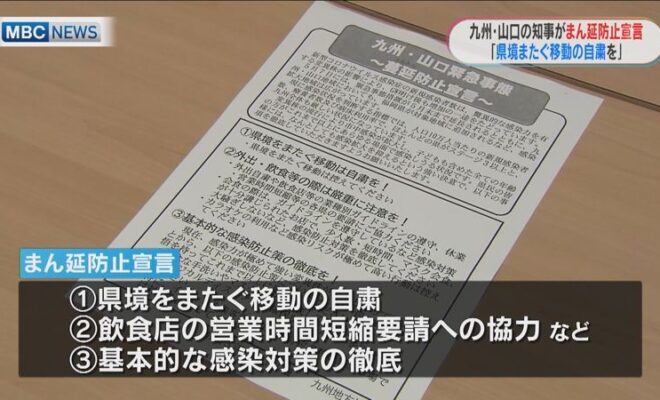 九州地方知事会がまん延防止宣言「県境またぐ移動自粛を」