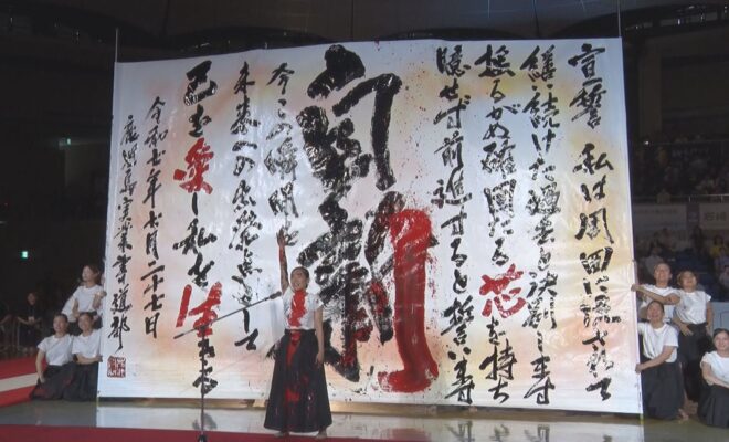 7月末に愛媛県で行われた「書道パフォーマンス甲子園」。6分間の演技時間内に「書とパフォーマンス」を成立させ、順位を競う。県勢初出場を果たしたのが鹿実書道部。大会での奮闘に迫った。…