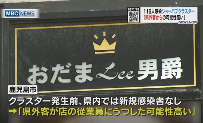 鹿児島市のショーパブで発生したクラスター=感染者の集団について、市は23日「県外客から持ち込まれた可能性が高い」との認識を示しました。鹿児島市のショーパブで発生したクラスターでは、これまでに県内の116人が感染し、そのうち77人が…