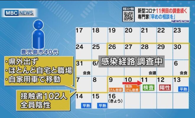 鹿児島県内11例目 接触者102人に修正 PCR検査「全員陰性」