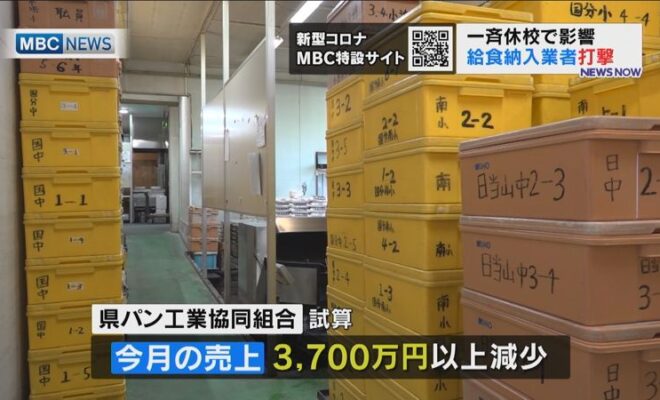 鹿児島県内では、学校の一斉休校を受け、学校の給食が中止となり、様々な影響が出ています。給食を納入している業者は、深刻な打撃を受けています。霧島市国分の「徳重製菓とらや」は、給食用のパンと米飯を市内のおよそ9割にあたる1万食…