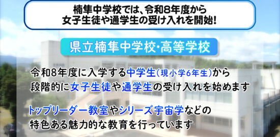 楠隼中学校では、令和8年度から女子生徒や通学生の受け入れを開始! ほか