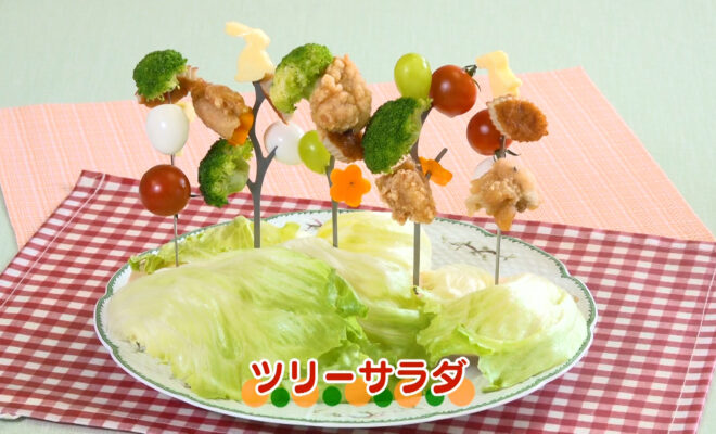 タイヨーの優ブランド商品「健気鶏焦がし醤油唐揚げ」が大変身。食卓を彩る「ツリーサラダ」を作ります。…