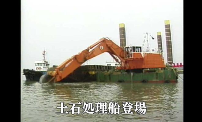 桜島の土石流対策で新鋭の土石処理船登場(桜島)(1988)