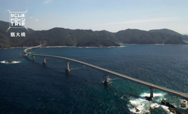 今回の旅の舞台は、薩摩川内市甑島。 下甑島と中甑島を結ぶ甑大橋は、2020年8月29日に開通し、全長は鹿児島県内で一番長い1553mを誇ります。