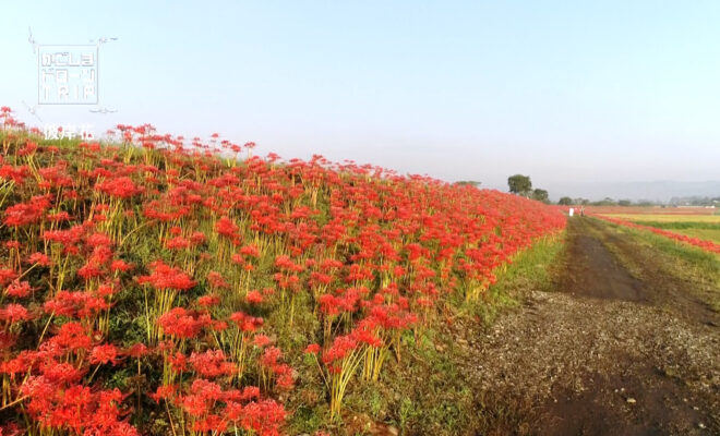 今回の舞台は、伊佐市大口大田。 郡山八幡神社近くの田んぼの土手では、初秋になると彼岸花が見ごろを迎えます。