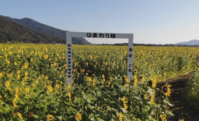 今回の舞台は、肝属郡肝付町北方のひまわり畑。 内之浦の県道沿いにあるひまわり畑は、冬になると花を咲かせ、訪れる人々を驚かせます。