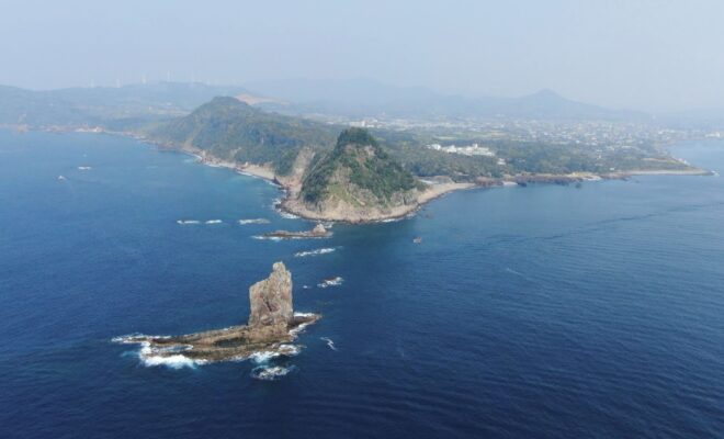 今回の舞台は枕崎市火之神岬町。 枕崎市の南東に位置する岬から沖合いに目を向けると見えてくるのが立神岩。