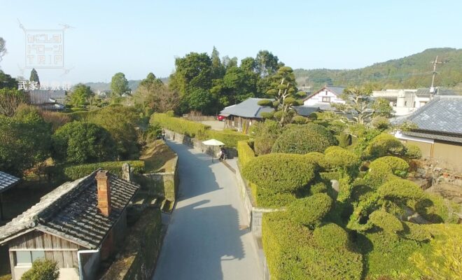 今回の舞台は南九州市知覧町郡の武家屋敷群。 江戸中期に造られた7つの庭園は、国の名勝に指定されています。通りには石垣と生け垣が整然と並び、門の先には美しい庭園が広がります。