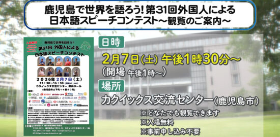 鹿児島で世界を語ろう!第31回外国人による日本語スピーチコンテスト~観覧のご案内~…