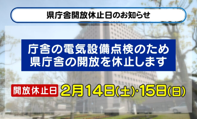 県庁舎開放休止日のお知らせ ほか