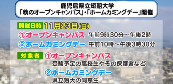 鹿児島県立短期大学「秋のオープンキャンパス」・「ホームカミングデー」開催 ほか
