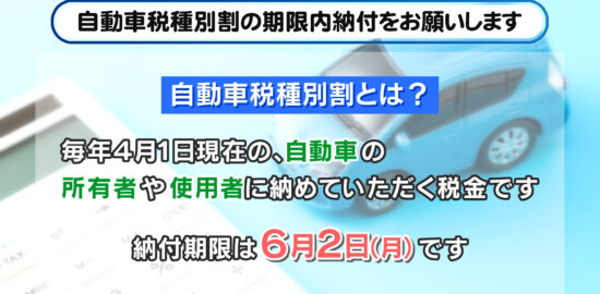 自動車税種別割の期限内納付をお願いします…