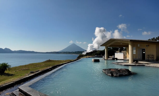 鹿児島市内から車で1時間半。指宿市山川にやってきました。今回紹介する温泉は、ヘルシーランド温泉保養…