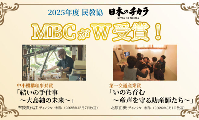 MBCが制作した2つの番組が、2025年度に放送された「日本のチカラ」の優秀作品を選ぶ番組選奨会議において、「中小機構理事長賞」と「第一交通産業省」をそれぞれ受賞しました。※「日本のチカラ」は、全国各地の「魅力あふれる産業…