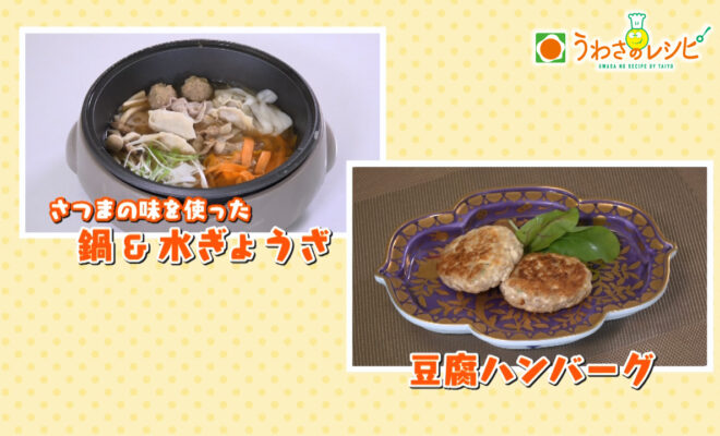さつまの味を使った「鍋&水ぎょうざ」と「豆腐ハンバーグ」を作ります。…