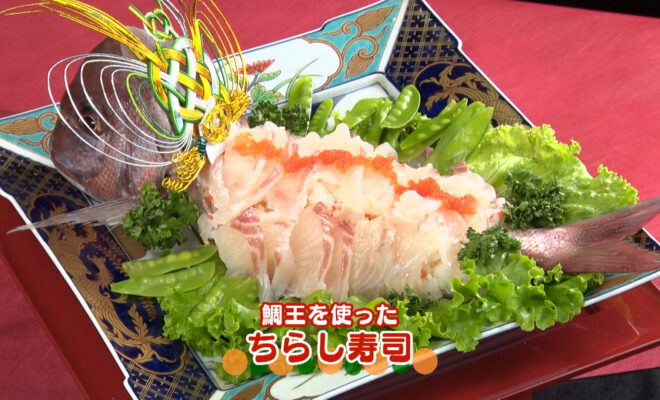 鯛王を使ったちらし寿司を作ります。※「鯛王」は長島町で稚魚から育てられた鯛のブランドです…
