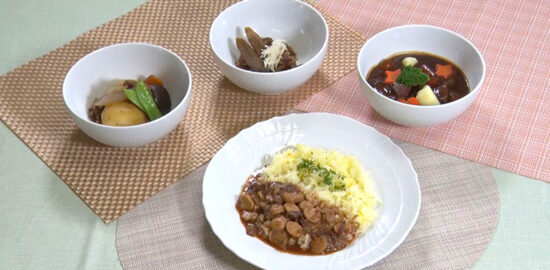 「ビーフシチュー」と「肉じゃが」と「ごぼうと牛肉のしぐれ煮」と「ビーフストロガノフ」を作ります。
