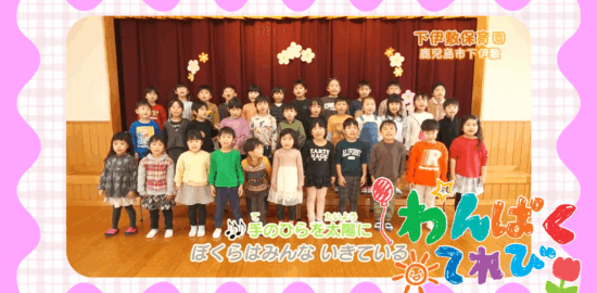 今週は「こども園ほしのこ」を訪ねました。こどもたちの笑顔は私たちをホッとさせます。こどもたちの笑顔は勇気を与えてくれます。「わんぱくてれび」は、鹿児島県内の幼稚園・保育園を訪ね、「わんぱく君」「わんぱくちゃん」を紹介する番…