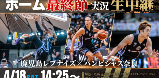 「バスケットボールB2リーグ 鹿児島レブナイズ×バンビシャス奈良」4月18(土)午後2時25分~実況生中継