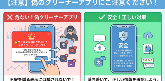 現在、広告を介して不正アプリをインストールさせる事例が確認されています。端末の標準…