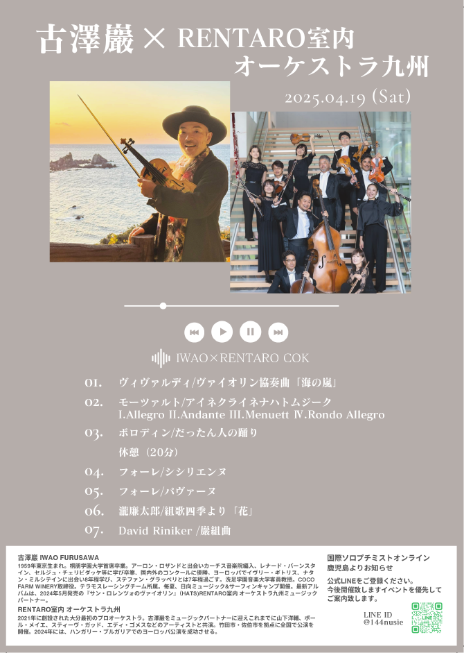 国際ソロプチミストオンライン鹿児島チャリティー事業「古澤巌with RENTARO 室内オーケストラ九州コンサート」