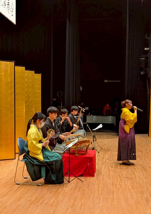 本年度は民謡などの新しい催しも行い、全学年の部員がともに演奏する全体曲「残光の彼方へ」は、和楽器の魅力を多くの人に伝えられたことと思います。他にもそれぞれの学年別の曲でも、各々が日々の練習の成果を余すことなく発揮できたと感じています。