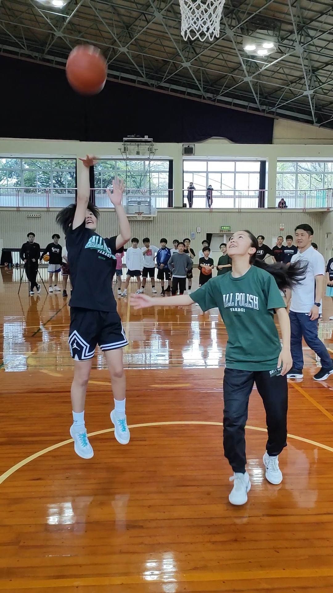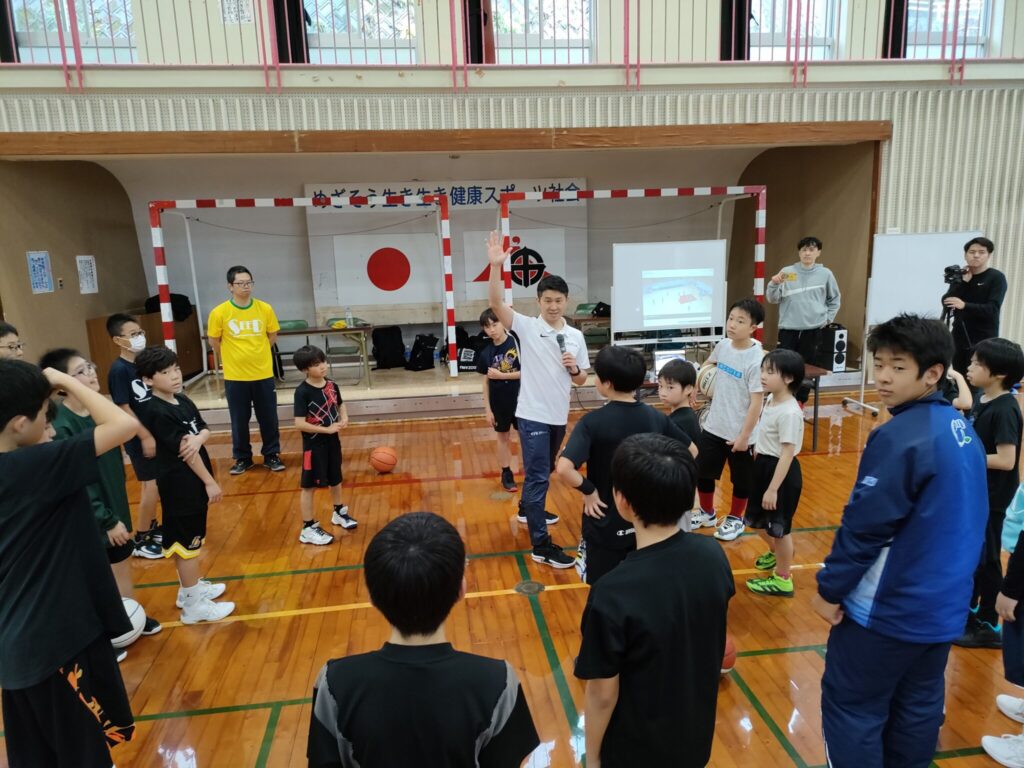 女子日本代表アシスタントコーチの鈴木良和氏をお招きして小学生、中学生を対象にバスケットボールクリニックを開催した。