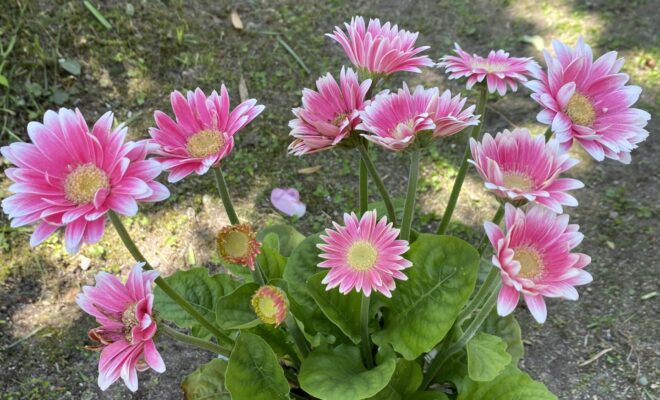 RN. クークー さんガーベラ1鉢になんと蕾まで合わせて13本頑張って咲いてくれてます。…