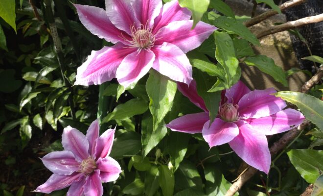 1. 庭先のクレマチス💗イペー💛