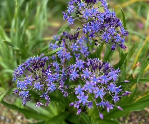 RN. 田中北町・岩田町 さん春の花が盛んに咲いていますが、私の小さな庭にはこれらの花に負けずと、オオツルボさんが青々しく可憐に挨拶しています。ありがとう!…