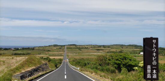 RN. 犬田ワン さん喜界島のサトウキビの一本道。真っ直ぐな道路を見て、ぶれずに突き進む生き方をさ…