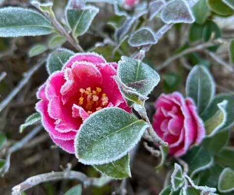 RN. なつきゆうこ さん職場の 垣根の さざんかの花 寒さに耐えていました。…