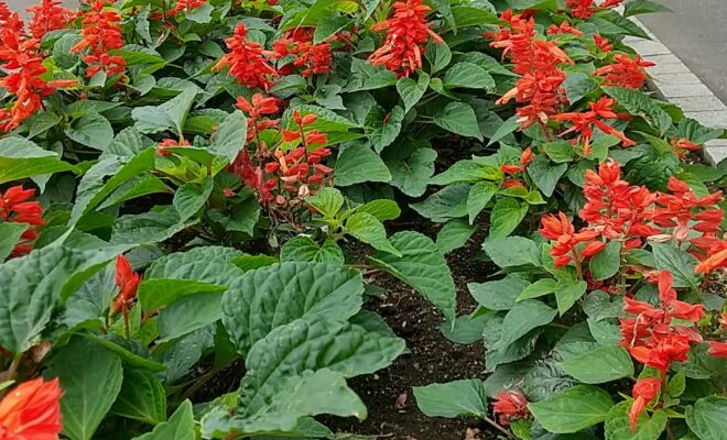 RN. フェアリーペンギン さん昨日は、いづろの病院に行きました。病院に行った帰り道、いづろにある山形屋の駐車場の前の花壇に、「サルビア」がきれいに咲いていました。(クリスマスカラーで、元気がでますよね。)他の花壇は、次に植えるの…