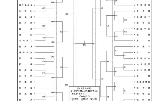 来年1月5日から東京で開催される第77回全日本バレーボール高校選手権大会県予選の組み合わせが決まりました。県予選は11月2日から始まり、男子52チーム、女子49チームが参加します。男女の決勝戦は、11月4日に鹿児島市の西原…