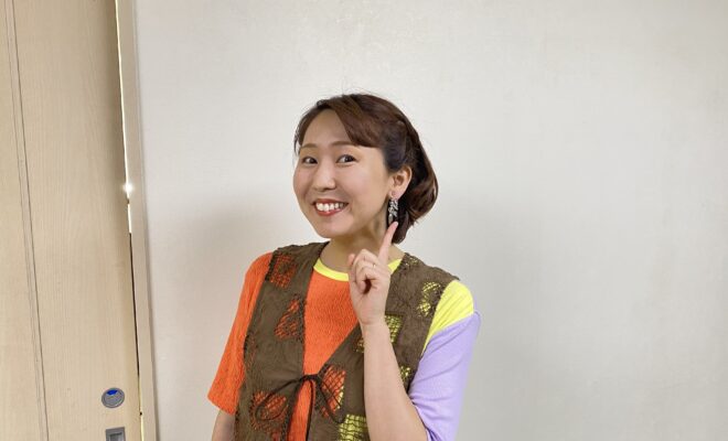 トップス ¥15,180←今ならここから20%offです!!オレンジ、紫、黄色の配色が不規則なのが可愛い🥺💓更に、それぞれのカラーの部分の生地が異素材になっているの…
