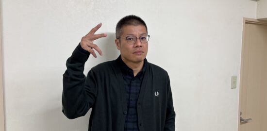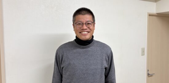 コットンニット ¥24,200カーキグレーで、紺のジャ…
